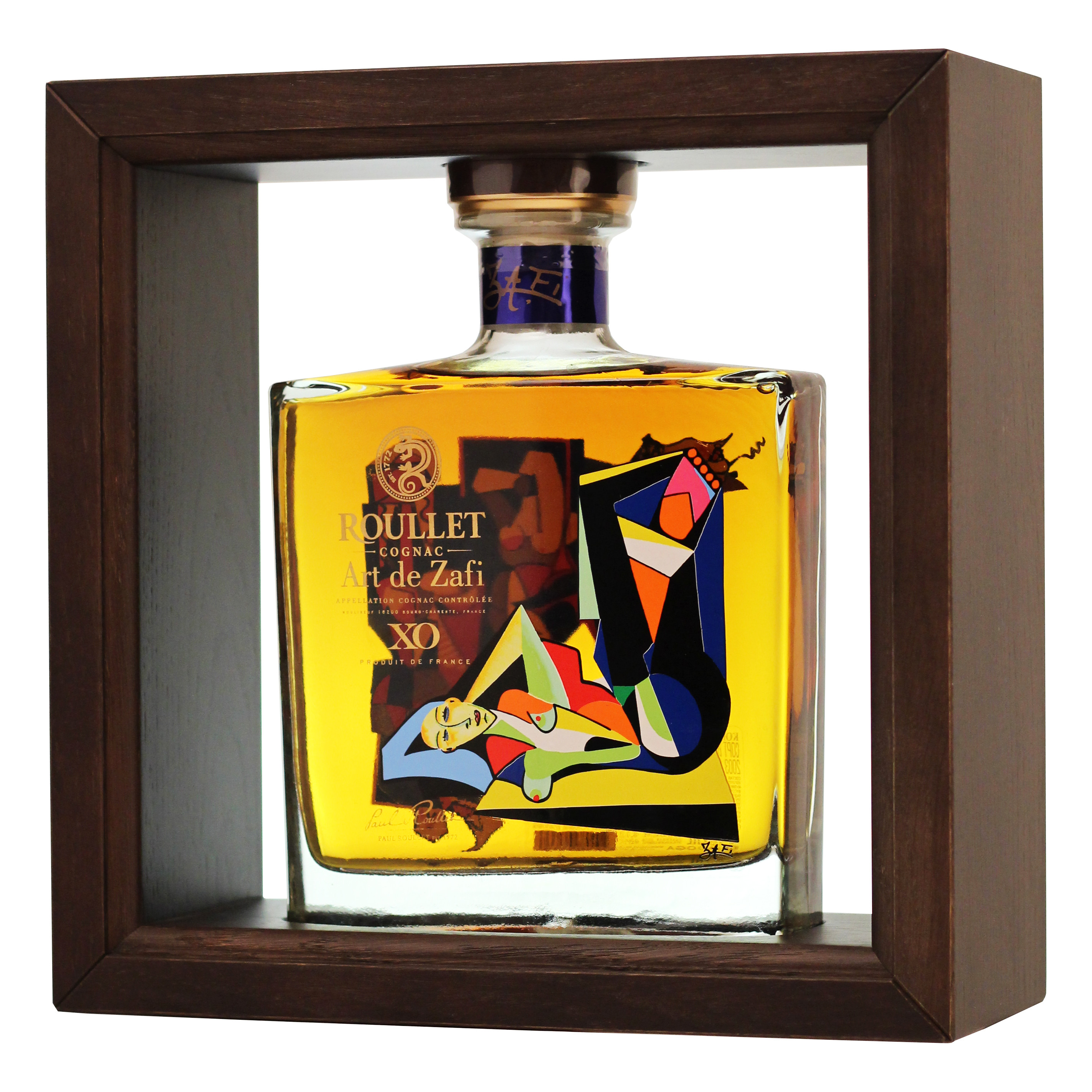 Коньяк Roullet XO Art de Zafi - первый лимитированный релиз, выпущенный в рамках празднования 250-летнего юбилея Дома Roullet. На его создание дом Roullet вдохновила картина «Женщины Коньяка» (Les femmes de Cognac) художника Жан-Клода Фитусси, более известного как Зафи (Zafi), который живет по соседству с поместьем Roullet. Он работает в уникальной технике, сочетающей кубизм и образность, геометрические формы и яркие цвета. «Мир нуждается в цвете, потому что цвет исцеляет», – говорит Zafi. На бутылке лимитированной серии в стиле кубизма изображены четыре женщины, три из которых символизируют крю региона Коньяк, в которых рождаются напитки Roullet: Фэн-Буа, Гранд-Шампань и Пти-Шампань. А четвертая – саму Францию.