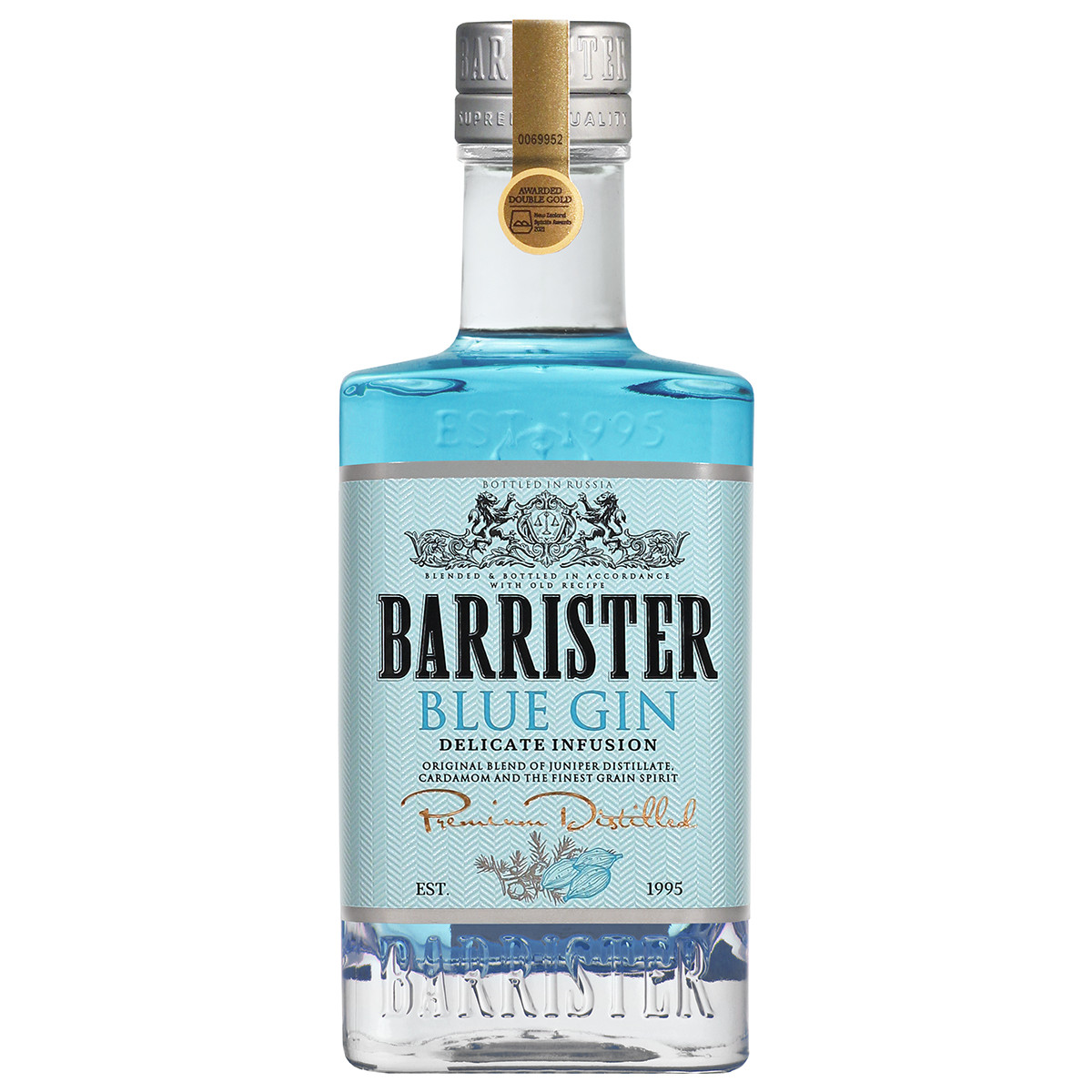 Джин создан специально для Джин Тоника. Купаж ароматических спиртов кардамона и апельсиновый цедры придают этому джину уникальный вкус. Продукт имеет сертификат Кашрута. Попробуйте его в составе коктейля Джин Тоник: В высокий бокал наполненый льдом, добавить 60 мл Barrister Blue и 120 мл Indian Tonic, перемешать. Украсить долькой лимона и огурца