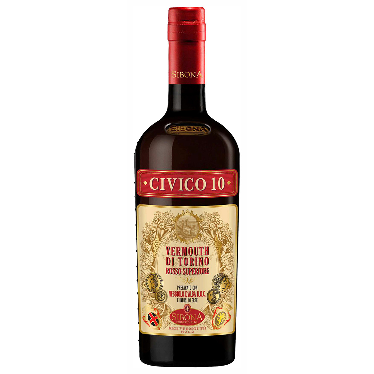 Вермут ди Торино - самый престижный продукт а в категории вермутов, произведенный в соответствии со строгими правилами. Сибона ЧИВИКО-10 Вермут ди Торино Супериоре - это единственный вермут, приготовленный 100% на основе вина NEBBIOLO D’ALBA DOC. Он является вермутом уровня “Superiore”, что означает, что он содержит крепость не менее 17% об. (Civico 10 - 18% .) и изготовлен из очень высококачественного вина. Создан из трав и специй в основном из региона Пьемонт, прошедших строгий отбор. В его состав входят пьемонтская артемизия, горький и сладкий апельсин, ваниль, горечавка и другие ботаникалы. Всего 22 ботаникала.