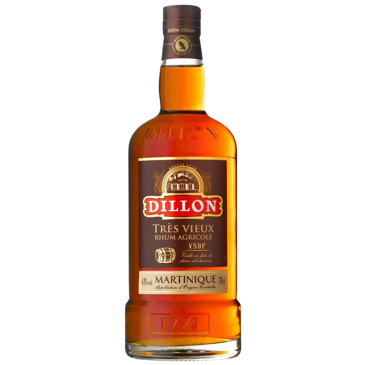 Ром Dillon Rhum Tres Vieux VSOP изготоавливается из свежего сока сахарного тростника и выдерживается в бочках из французского дуба не менее четырёх лет.