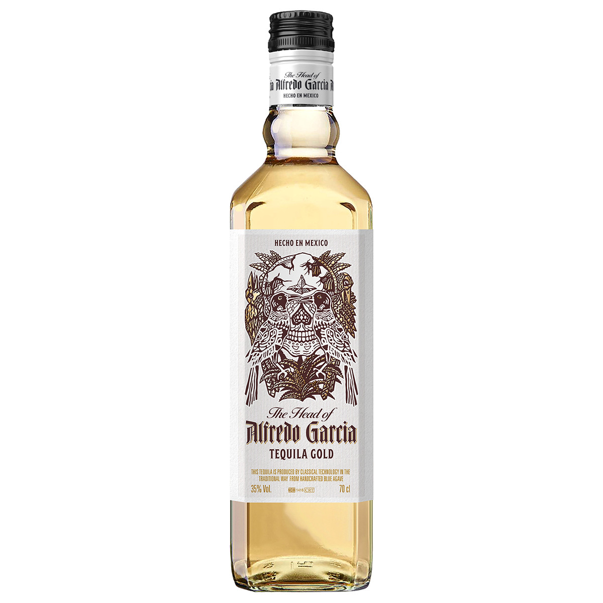 Классическая текила категории миксто, произведенная согласно традициям и законодательству Мексики, с защищенным географическим наименованием. Текила The Head Of Alfredo Garcia созвучна с названием известного мексиканского фильма 1974 года "Bring me the head of Alfredo Garcia" и имеет такой же брутальный облик, как и сам фильм. Нежный цвет достигается благодаря подкрашиванию карамелью.