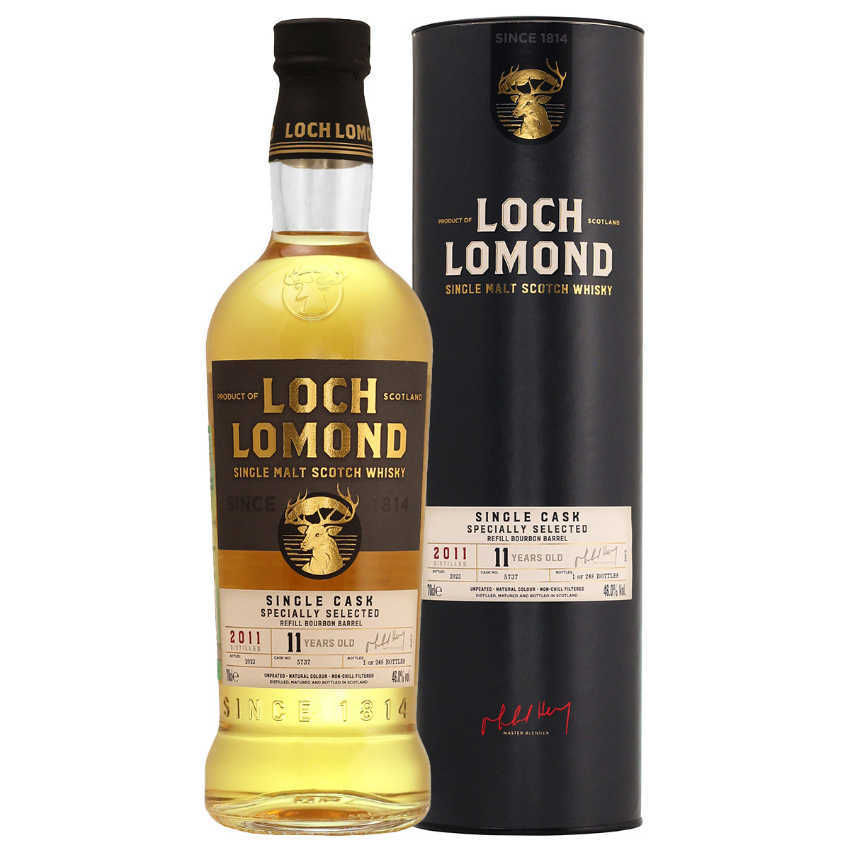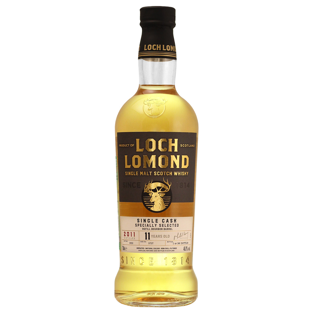 Однобочковый розлив от винокурни Loch Lomond. Односолодовый виски, произведен в уникальных перегонных кубах с прямыми шеями без использования торфа. Выдержан в бочке из-под бурбона второго заполнения. Всего разлито 248 бутылок при крепости 46% без холодной фильтрации. Виски сохранил натуральный цвет. Настоящий эксклюзив для коллекционеров и ценителей шотландского виски!
