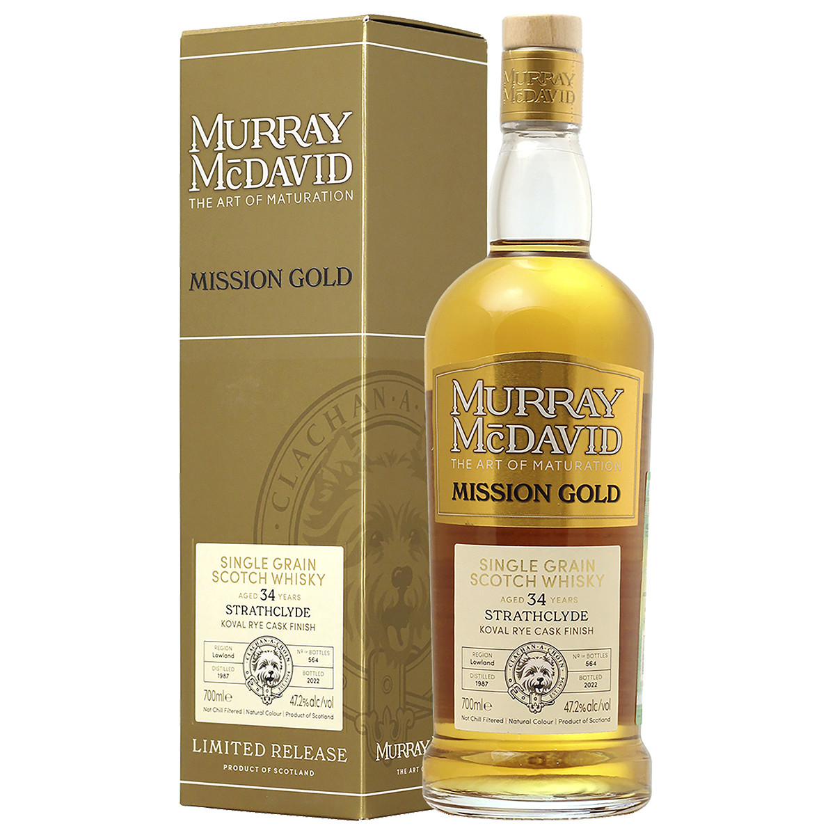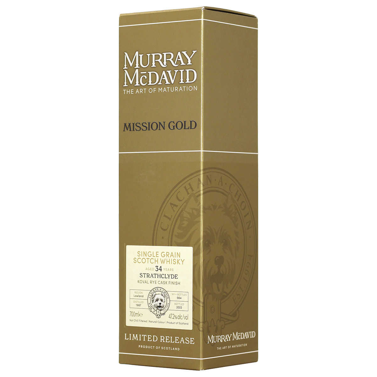 MURRAY MCDAVID MISSION GOLD STRATHCLYDE AGED 34 YEARS. Strathclyde, возможно, является крупнейшим заводом по производству шотландского виски, о котором вы никогда не слышали! Он расположен в самом сердце Глазго, на берегу реки Клайд. Эта дистиллерия использует пшеницу для производства виски, благодаря чему, напиток обладает ярким сливочным тоном. Финиш данного виски проходил в бочках из-под американского ржаного виски Koval, Чикаго.
