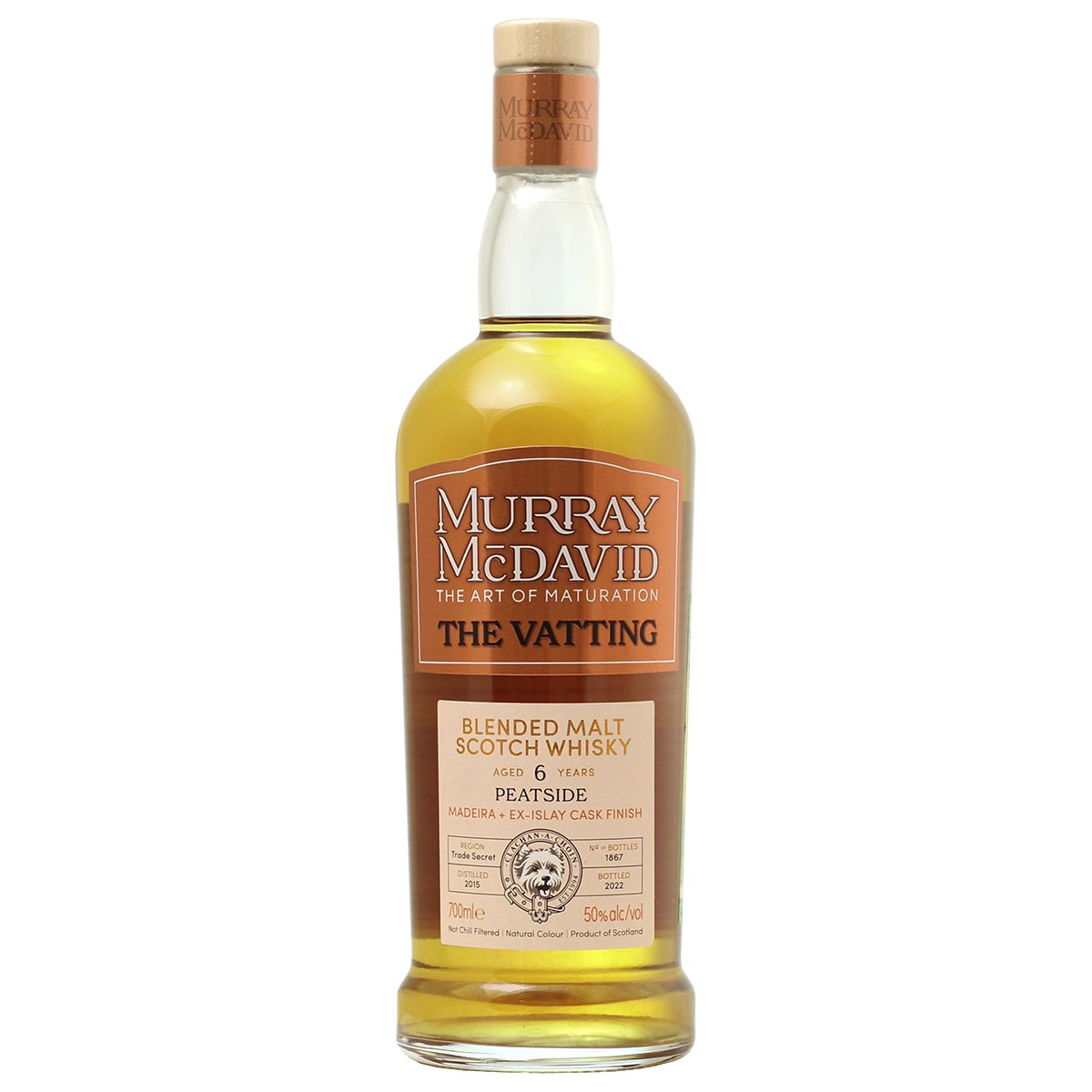 MURRAY MCDAVID THE VATTING PEATSIDE. Это последнее издание Peatside — самое смелое сочетание бочек и спирта на сегодняшний день! Названия дистиллерий хранятся в строжайшем секрете, что делает этот релиз еще интереснее. Уникальная партия сочетает в себе виски, выдержанный в сильно обугленных бочках из-под торфяного виски с острова Айла, и свежие баррики из-под мадеры от наших партнеров по бочкам, Justino's, Португалия. По итогу получился яркий дымный напиток с тонами морской соли, хурмы и торфа.