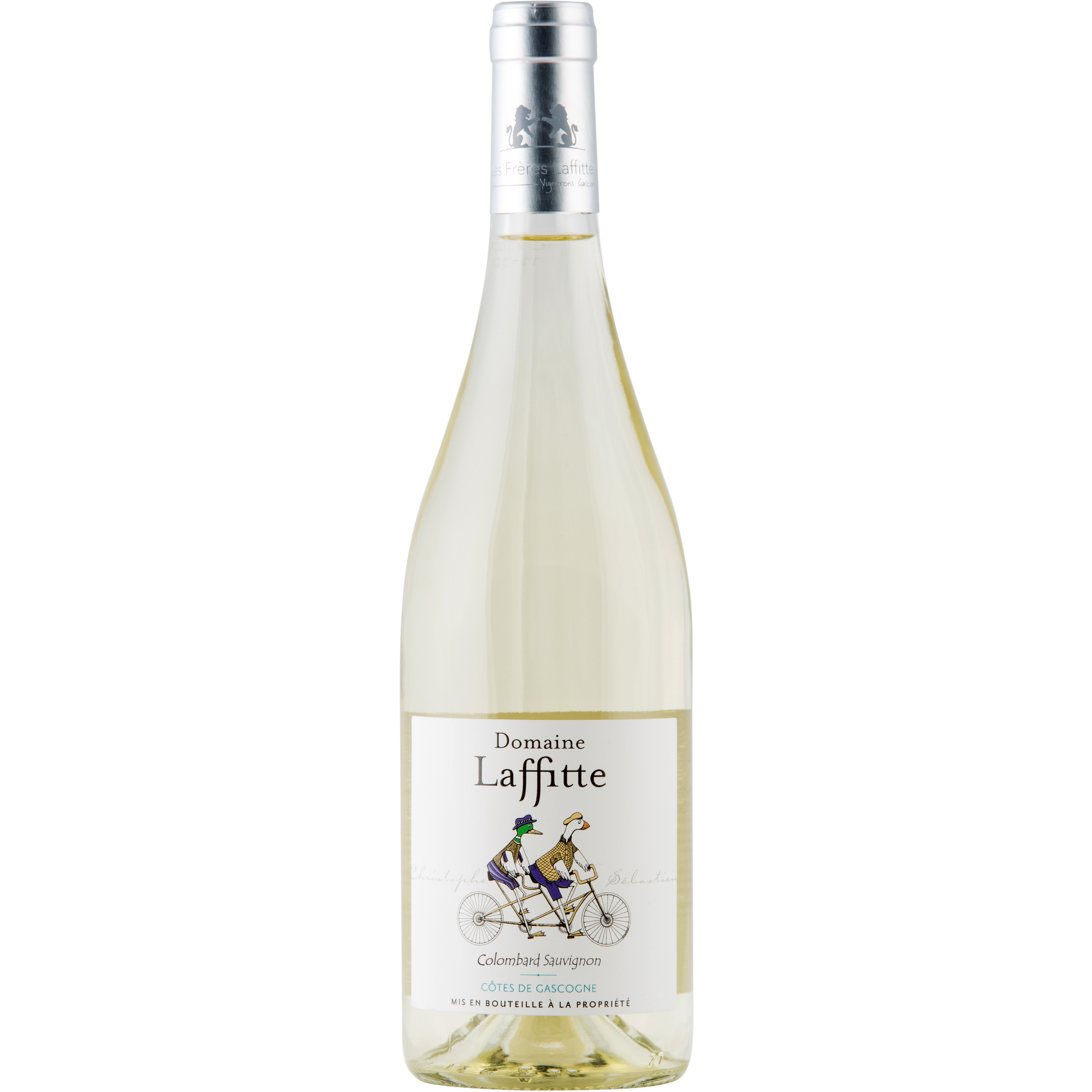 Свежее яркое вино из винограда сортов Коломбар и Совиньон Блан, выращенных в Гаскони под руководством двух братьев Лаффит. На этикетке «Domaine Laffitte» мы видим радостных и веселых гусей. Один гусь – как Себастьен –большой, сильный и выносливый, второй – как Кристоф – поменьше, но умный, и также очень важный. Работая в тандеме, каждый играет свою роль, и вместе они мчатся вперед.Прекрасно подойдет в качестве аперитива, а также с рыбой и белым мясом.