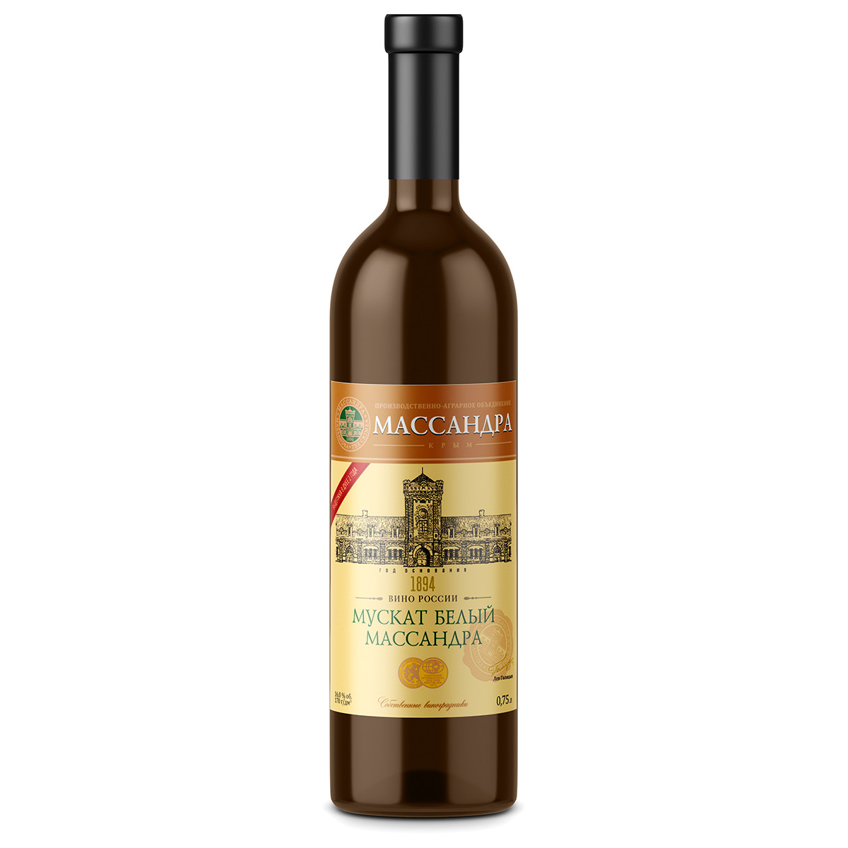 Ликерное вино Массандра Мускат белый производится из одноимённого сорта винограда, выращенного на собственных виноградниках предприятия в Крыму. Данное вино выпускается с 1891 года. Выдерживается не менее двух лет в особых дубовых бочках, хранящихся в прохладных подвалах завода «Массандра».