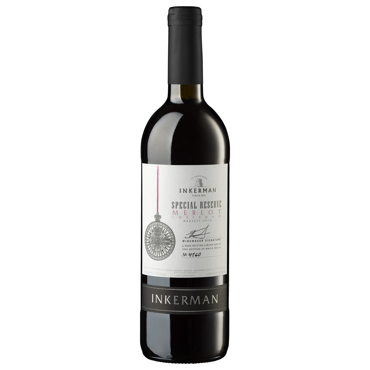 Коллекция «SPECIAL RESERVE» это ограниченный тираж премиальных вин. При производстве вин данной коллекции снижена нагрузка на куст винограда, взяты исключительно лучшие фракции виноградного сока, выдержка происходит только в новых бочках из французского дуба. Ограниченный выпуск партий с уникальным номером на каждой бутылке. Красное сухое вино, произведённое из сорта винограда Мерло, произрастающий в долине реки Альма. Вино выдержано в бочках из французского дуба среднего обжига 6 месяцев.