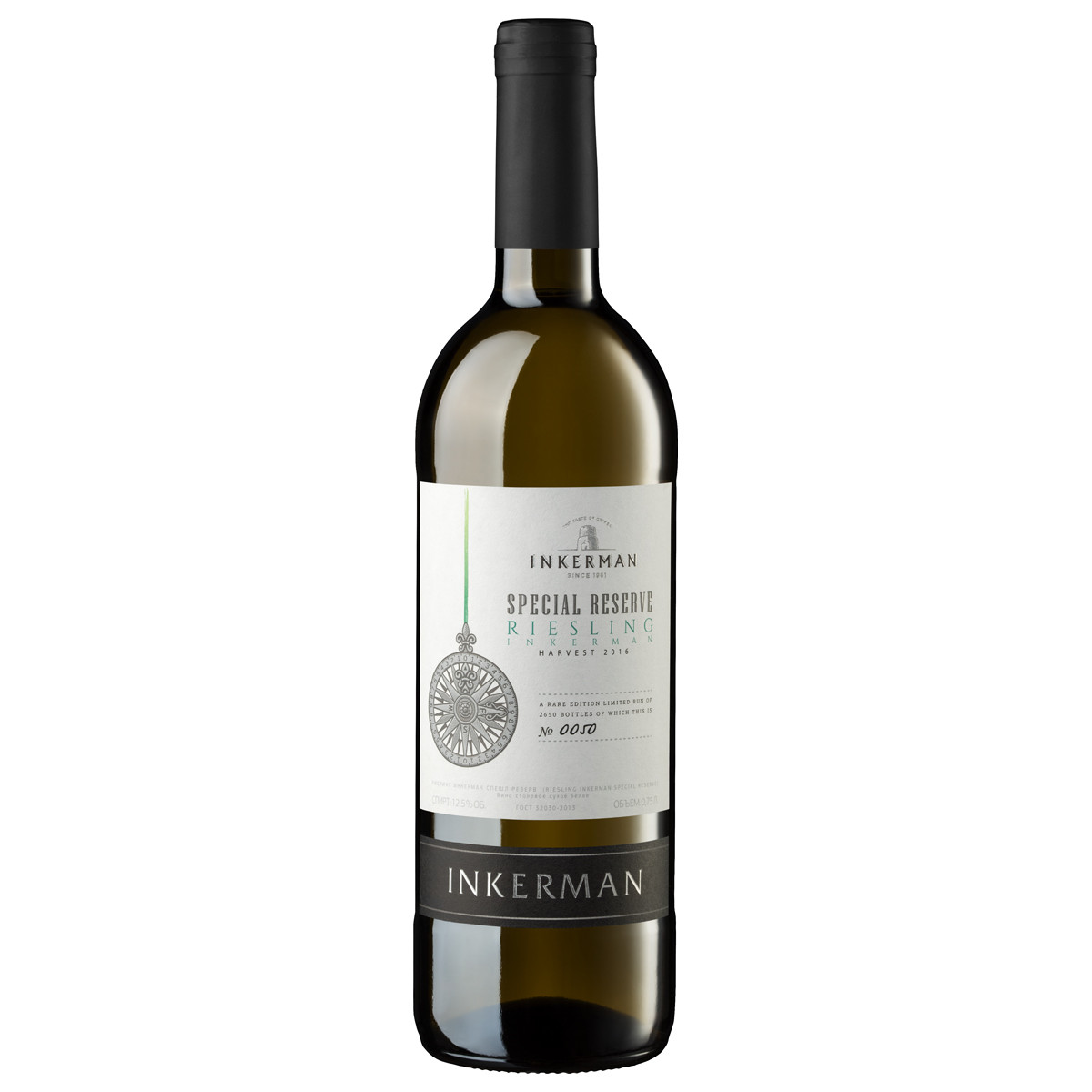 Коллекция «SPECIAL RESERVE» это ограниченный тираж премиальных вин. При производстве вин данной коллекции снижена нагрузка на куст винограда, взяты исключительно лучшие фракции виноградного сока, выдержка происходит только в новых бочках из французского дуба. Ограниченный выпуск партий с уникальным номером на каждой бутылке. Белое сухое вино, произведённое из сорта винограда Рислинг Рейнский, произрастающий в долине реки Кача Севастопольского региона. Вино выдержано в бочках из французского дуба среднего обжига 6 месяцев.