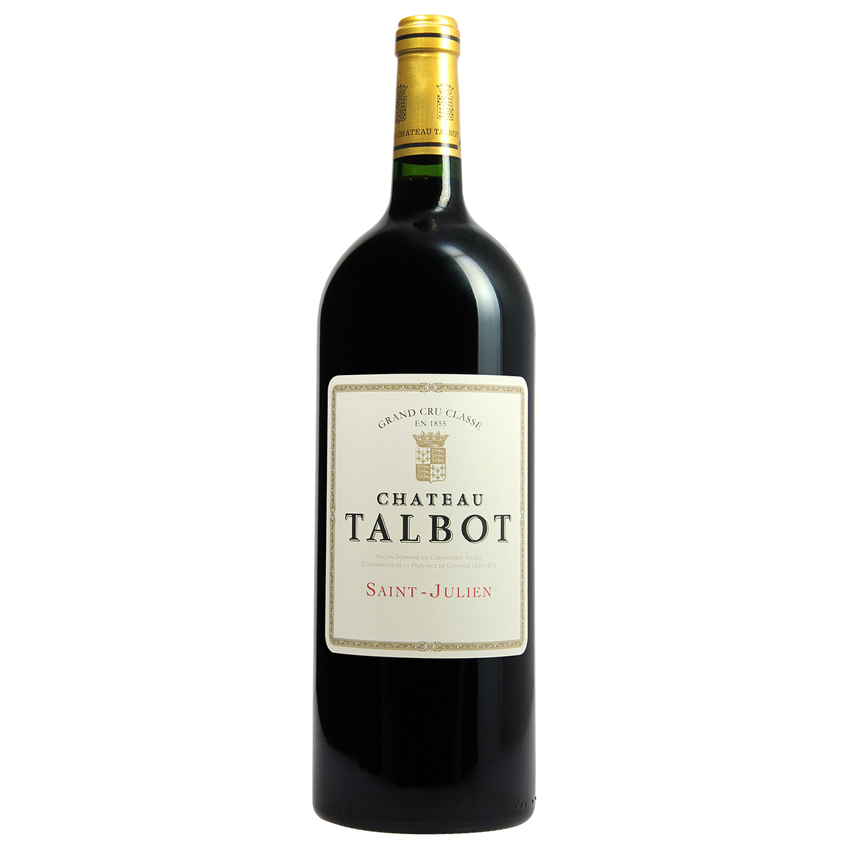 Шато Тальбо занимает 110 га в городе Сен-Жюлен-Бейшевель в апелласьоне Сен-Жюлен. Название замка происходит от фамилии английского генерала, жившего в XV веке – коннетабля Джона Тальбо (Сonnétable John Talbot), графа Шрусбери (Shrewsbury). В течение 30 лет Джон принимал участие в Столетней Войне, отвоевал у французов много территорий, в том числе регион Жиронда, и за это был прозван «подполковник Гиени». Местное население бурно приветствовало его как «Короля Тальбо». В 1453 году в битве при Кастийоне, недалеко от Шато д’Эгий, он умер на поле сражения. Узнав о его смерти, король Франции Карл VII заявил в память о Коннетабле: «Пусть Бог примет в своё королевство доброго рыцаря». Хотя они были врагами, король Франции глубоко уважал его рыцарские достоинства. По классификации 1855 года Шато Тальбо стало 4-м Гран Крю Классе. В течение двух столетий, поместье было собственностью семьи Маркизы д’Окс де Леску (Marquis d’Aux de Lescout), которая развивала виноградники. В 1917 году Дезире Кордье (Désiré Cordier) стал новым владельцем Шато. В конце XIX века Дезире работал винным негоциантом в городе Туль (Toul) на северо-востоке Франции – в тех краях, где проходила война 1870 года. Опасаясь нового конфликта с немецким соседом, он решил отправить жену с маленьким сыном Жоржем в Бордо, и в то же время открыть там негоциантский бизнес. Накануне Первой Мировой Войны он переехал туда окончательно. В 1917-м он купил Шато Тальбо. Под его руководством Шато добилось признания среди самых знаменитых бордоских Гран Крю Борделе. Дезире купил и другие Гран Крю, среди которых Шато Грюо Лароз, 2-ой Гран Крю Классе Сен-Жюльена. В 1925 году Дезире стал мэром Сен-Жюльена. В начале 1930-х официальная статистика не вызывала никаких сомнений: в Медоке средняя продолжительность жизни была гораздо выше, чем в других регионах страны. В 1934-м Дезире создал в Сен-Жюльене «Праздник Долголетия», который торжественно открыл Президент Республики Альбер Лебрен (Albert Lebrun). В своей речи мэр произнёс: «Мы проявили бы неуважение к нашему национальному напитку, если бы игнорировали сравнение в пользу наших хороших и вкусных вин. Согласно статистике, Медок и, особенно, Сен-Жюльен является родиной восьмидесятилетних. Это и есть доказательство того, что хорошее вкусное вино является эликсиром долголетия!» Сын Дезире – Жорж и его внук Жан продолжали отцовское дело, сохраняя Шато Тальбо на самых вершинах Медока. Дочерей Жана назвали Нэнси (Nancy) и Лорэн (Lorraine) – в честь региона, откуда они родом – Лотарингия. Жан умер в 1993 году. Сегодня Нэнси Кордье – дочь Жана – владеет Тальбо и обеспечивает славу Шато вместе с мужем Жан-Полем и детьми: Филиппин (Philippine), Маргерит (Marguerite) и Гюставом Биньон (Gustave Bignon). Жан-Мишель Лапорт (Jean-Michel Laporte) – бывший главный энолог некоторых шато, в том числе Ля Консейянт (La Conseillante) в Помроле – является Мэтром де Шэ с 2007 года. В 2018-м был отмечен сотый миллезим семьи Кордье. Второе вино Шато – Коннетабль Тальбо – было создано в 1960-х годах в память о знаменитом английском полководце.