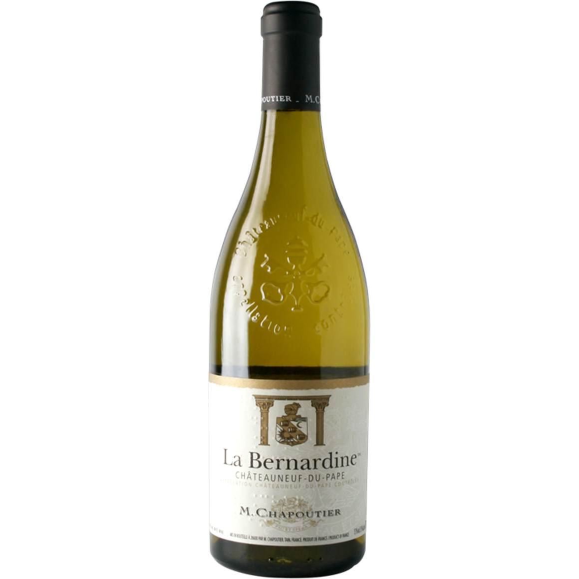 Белый Шатонеф-дю-Пап это редкое белое белое вино, всего 5% от всех вин апелласьона. Chateauneuf-du-Pape La Bernardine M.Chapoutier это белое вино из винограда сорта Гренаш Блан, выращенного на легендарном винограднике Шатонёф-дю-Пап (некогда принадлежавшем Папе Римскому) в южной части Долины Роны. Виноградники состоят из камней, которые когда-то выстилали русло реки Роны. Камни сохраняют тепло от дневного солнца, чтобы лозы согревались ночью. Эти виноградники идеально подходят для лоз Гренаш Блан. Очень низкая урожайность позволяет производить тонкие вина, характеризующиеся богатством и теплотой. «La Bernardine» Blanc производится только из одного сорта винограда - Гренаш Блан