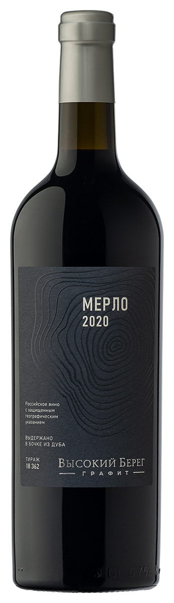 "Высокий Берег" Мерло Графит — красное сухое вино из винограда сорта Мерло, собранного на виноградниках агрофирмы Южная Таманская полуострова Краснодарского края. После ручного сбора урожая ягоды подверглись традиционной винификации с проведением яблочно-молочного брожения и последующей выдержкой в бочках из франукзского и американского дуба на протяжении 12 месяцев.
