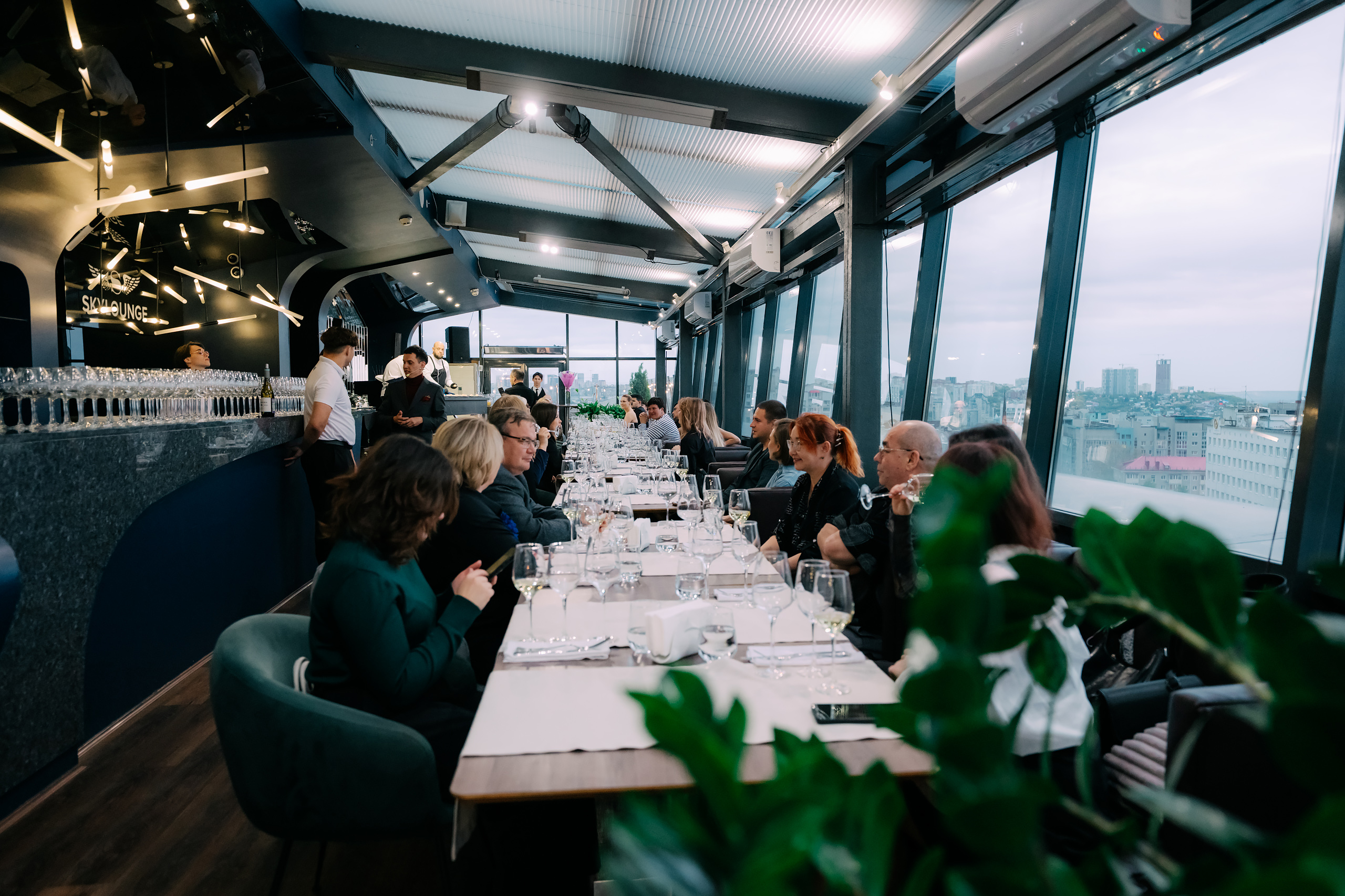 Несмотря на дождливую погоду, в зале царила теплая, радостная и вдохновляющая атмосфера. Панорамные виды Уфы с крыши пятизвездочного Sheraton Plaza, авторская подача блюд, легкая музыка и шутки от сомелье и шефа превратили вечер в настоящее гастрономическое путешествие.