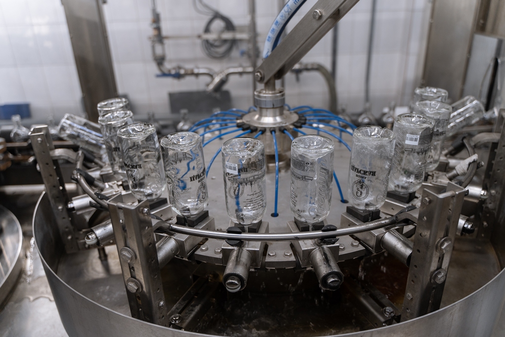 Приготовленная смесь спирта и воды «отдыхает» в специальных емкостях, а затем подвергается фильтрации через активный уголь и чистейший кварцевый песок. Именно при медленной фильтрации водки через кварц и уголь и происходит процесс ее очистки и образования новых соединений, облагораживающих вкус и аромат.