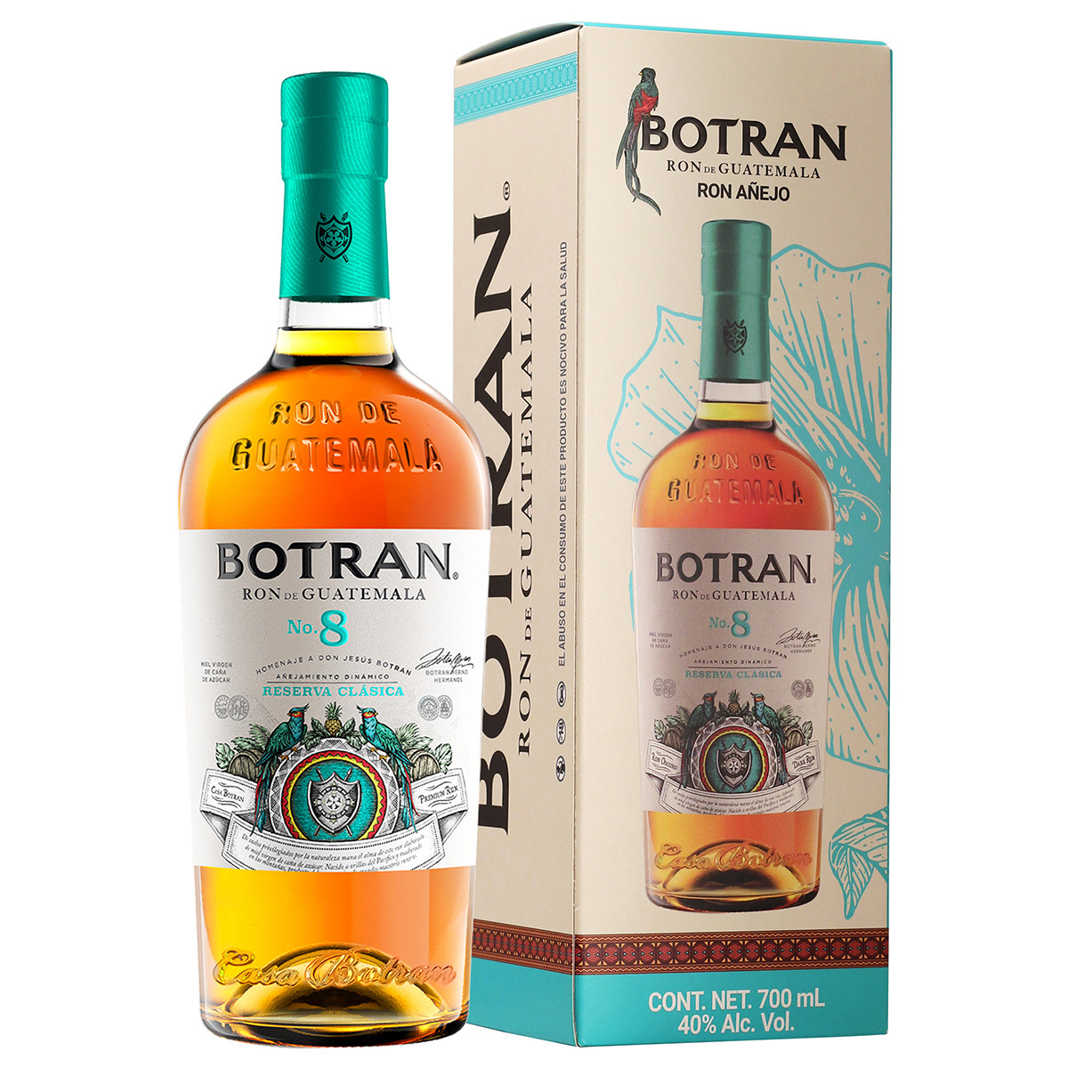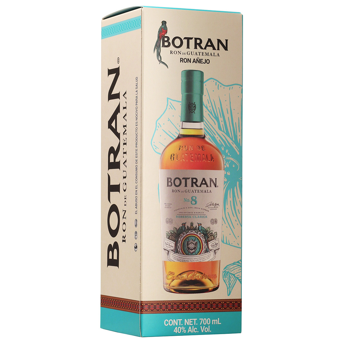 Купаж ромов, выдержанный от 3 до 8 лет по системе solera. Выдержка в комбинации бочек из-под американского виски и бочек из-под хереса. Botran №8 обращается к испанским традициям производства рома и переворачивает их с ног на голову, как это умеют делать только гватемальцы. Идеально подходит для мохито, пина-колады и май-тай.