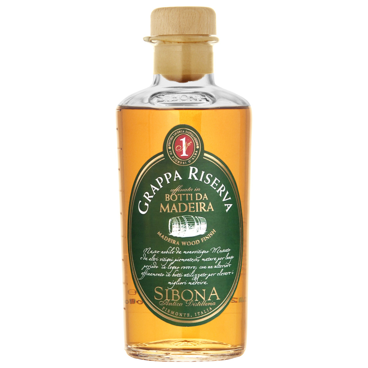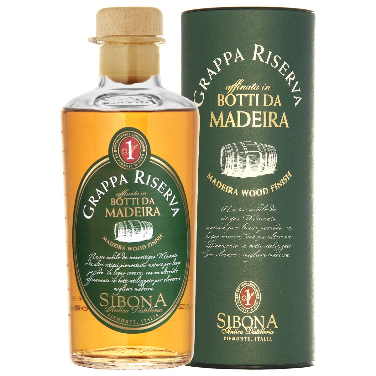Граппа Sibona Riserva Madeira Wood Finish – напиток, который производится на северо-западе Италии в регионе Пьемонт, получаемый в результате однократной дистилляции жмыха из сорта винограда Москато и дальнейшей выдержки спиртов не менее 1 года в стальных чанах , далее 2 года в традиционных дубовых бочках и еще 2 года в бочках из под Мадейры.