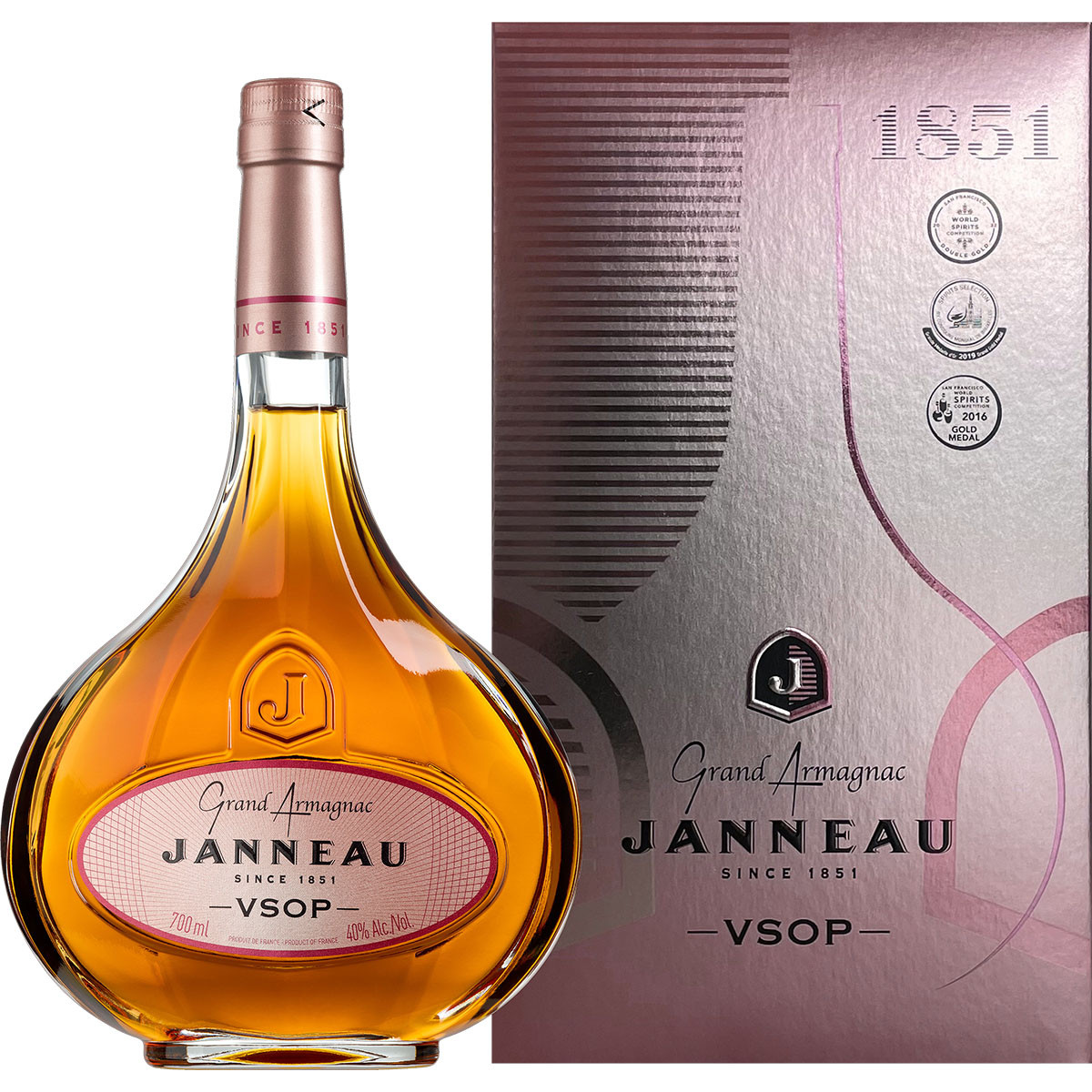 Cимвол стиля дома Janneau VSOP – это идеальный бленд тщательно отобранных о-де-ви (спиртов), минимальный возраст выдержки которых составляет 7 лет. VSOP – это бленд спиртов, дистиллированных из белых вин, которые получены из сортов Бако, Уни Блан и Фоль Бланш. Виноград выращен в двух основных областях с контролируемыми наименованиями: Ба-Арманьяк и Тенарез. Это также сочетание двух разных типов перегонки: двойной дистилляции в перегонных кубах (особенность дома Janneau) и однократной перегонки в арманьячном аламбике.