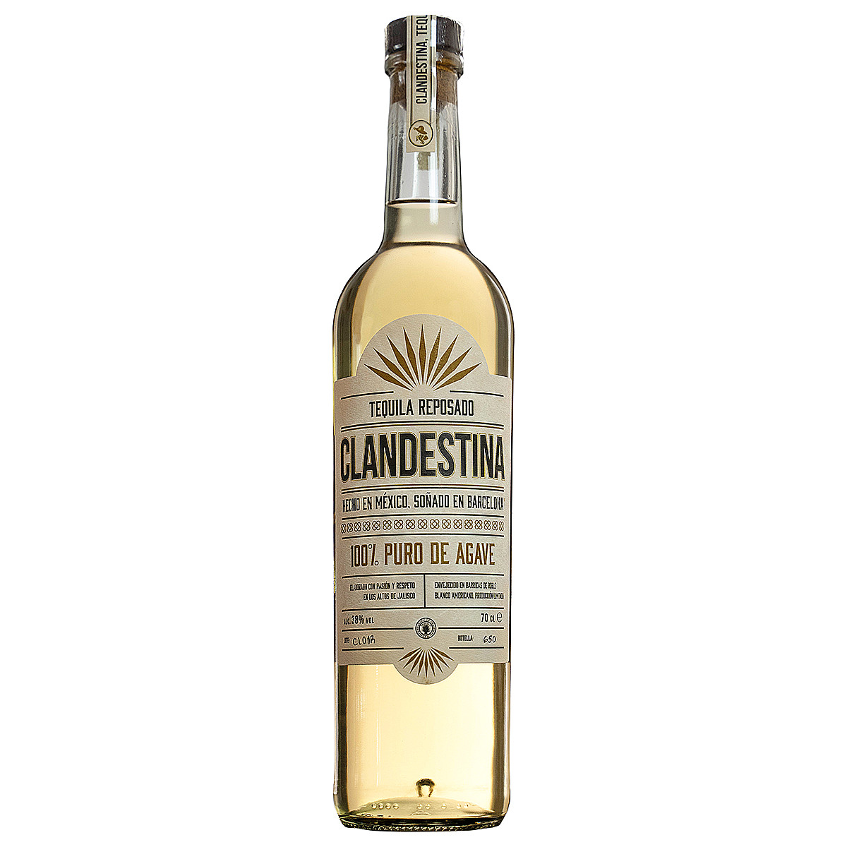 Текила Clandestina Reposado производится исключительно из голубой агавы Вебера высшего качества. Агава произрастает в зоне Los Altos штата Халиско, что придает текиле узнаваемый сладкий фруктовый вкус. На создание одной бутылки текилы Clandestina уходит 9 кг агавы, что на 50% больше, чем у других премиальных производителей текилы. Это обеспечивает напиток особенно насыщенным и сладким вкусом. Агава для текилы Clandestina запекается в автоклавах, а ферментированный сок запечёной агавы проходит двойную дистилляцию до крепости 55%. После дистилляции текила Clandestina Reposado проходит выдержку от 3 до 6 месяцев в бочках из-под бурбона и из американского дуба, формируя идеальный баланс между выразительным агавовым характером и нотами дуба. Clandestina Reposado всегда выпускается небольшими партиями с особенным вниманием к каждому этапу производства.