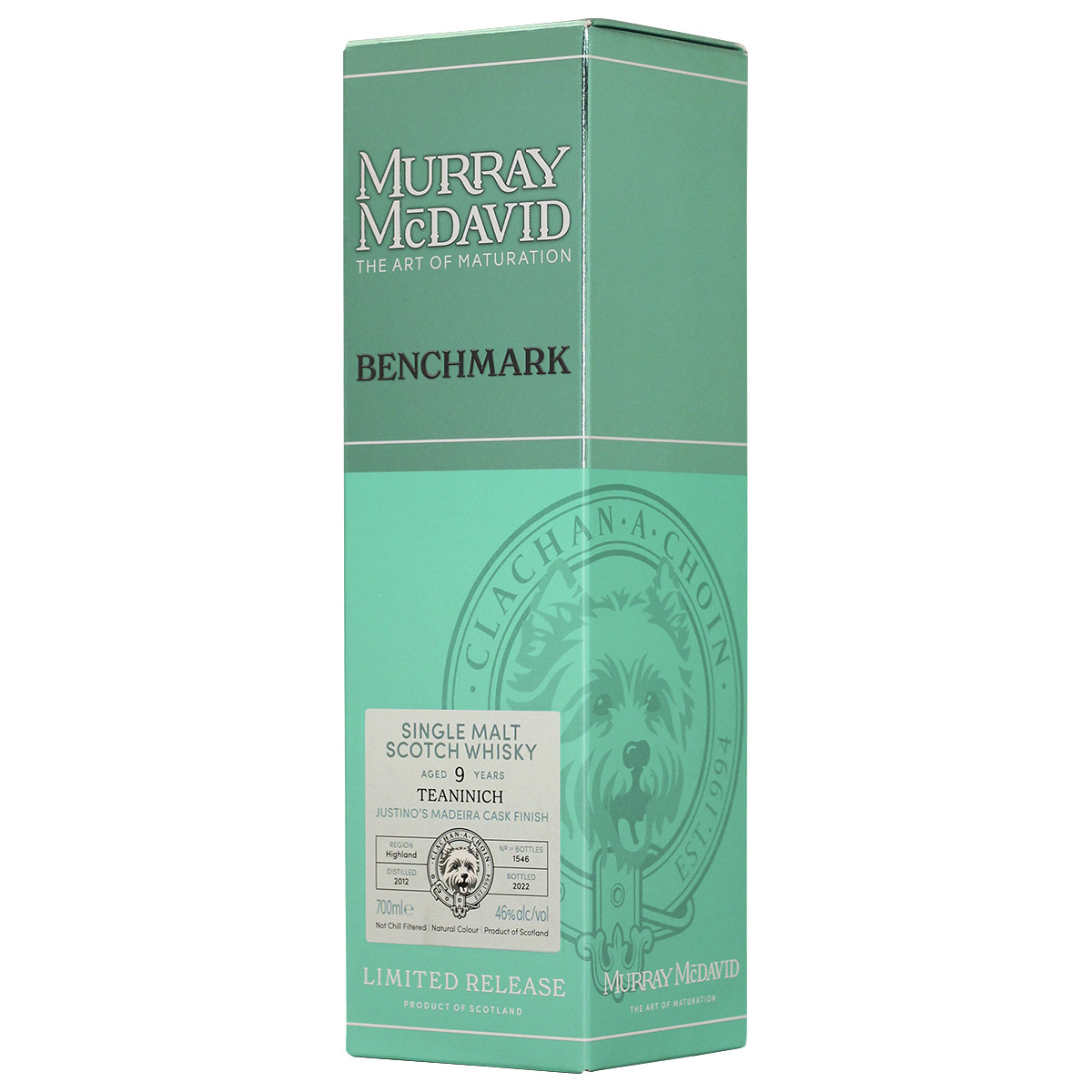 «BENCHMARK» — это сердце нашего ассортимента. Выдержка: 5,5 лет в бочках из-под бурбона. Финиш: 3,5 года в барриках из-под мадеры. Регион: Хайленд. Дистиллерия: Teaninich. Дистиллирован в 2012 году, бутилирован в 2022 году без холодной фильтрации и подкрашивания. Всего выпущено 1546 бутылки. Бочки 720993/994/996/997.