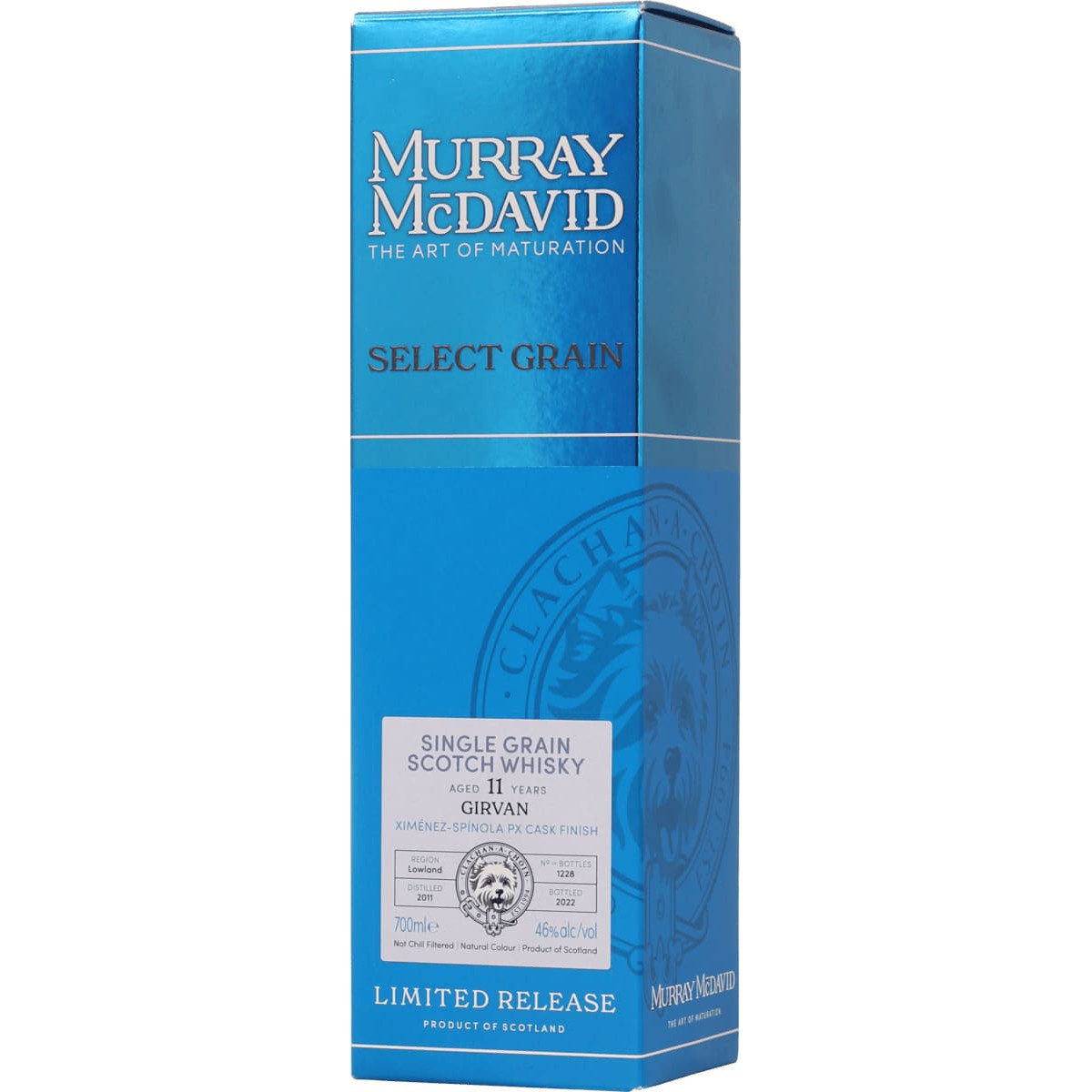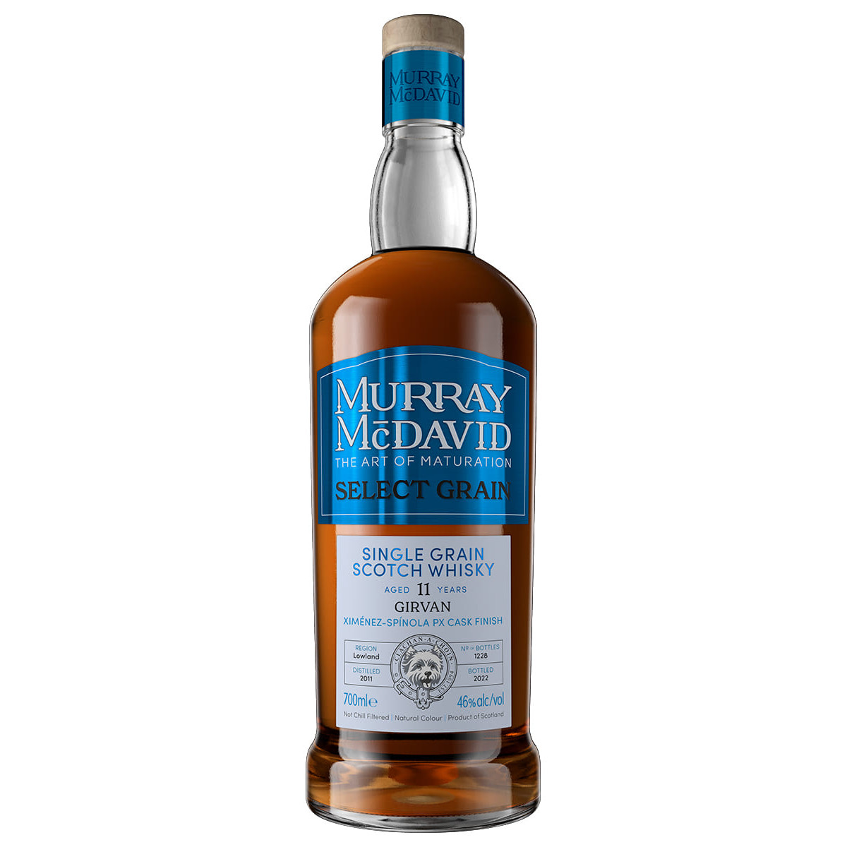 «SELECT GRAIN» — коллекция выдающихся зерновых спиртов. Выдержка: 8 лет в бочках из-под бурбона. Финиш: 3 года в бочках из-под хереса Педро Хименес. Регион: Лоуленд. Дистиллерия: Girvan. Дистиллирован в 2011 году, бутилирован в 2022 году без холодной фильтрации и подкрашивания. Всего выпущено 1228 бутылок. Бочки 700002/2А/3.