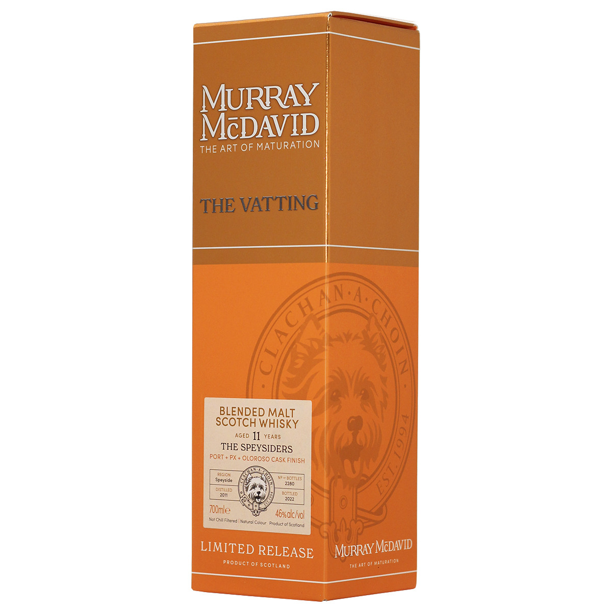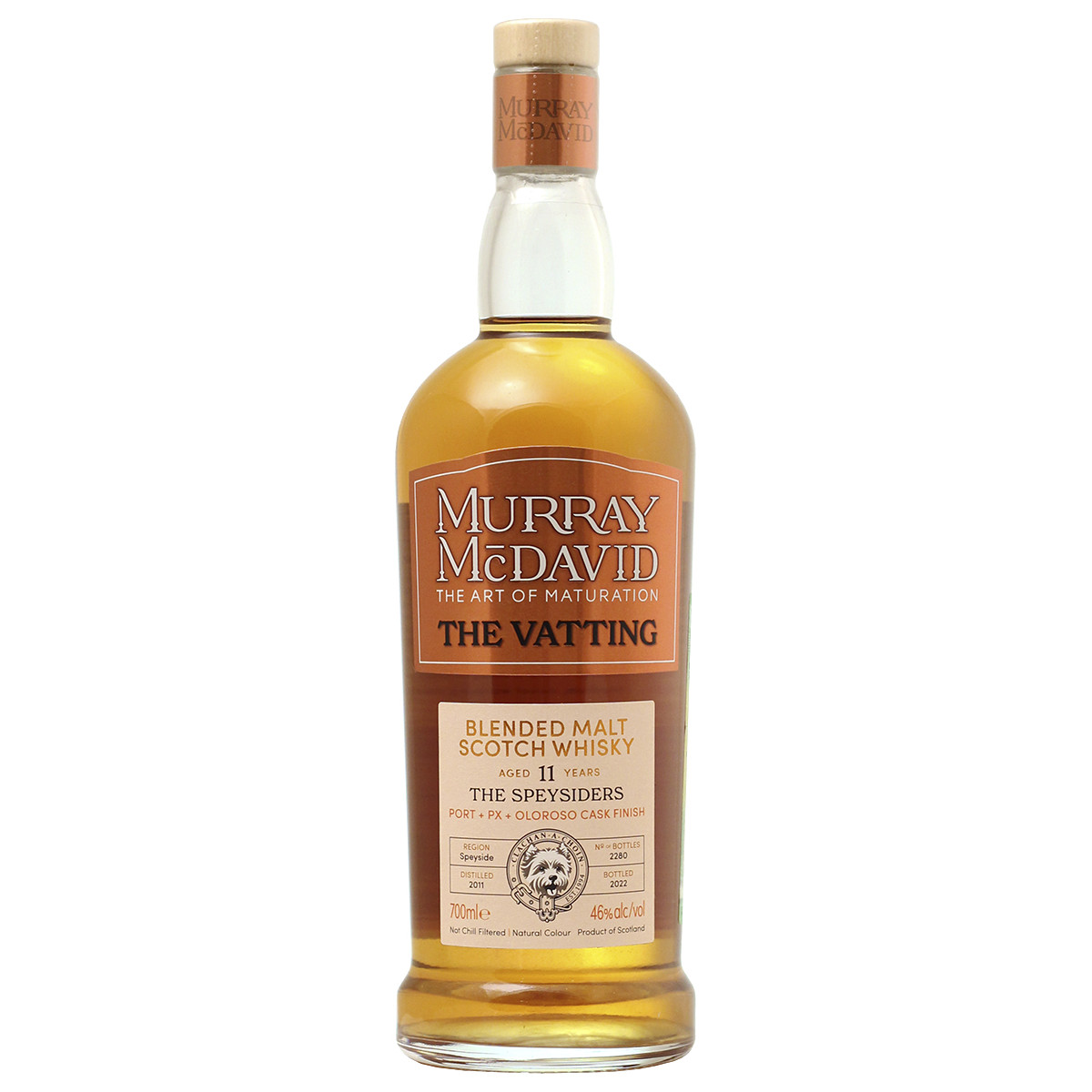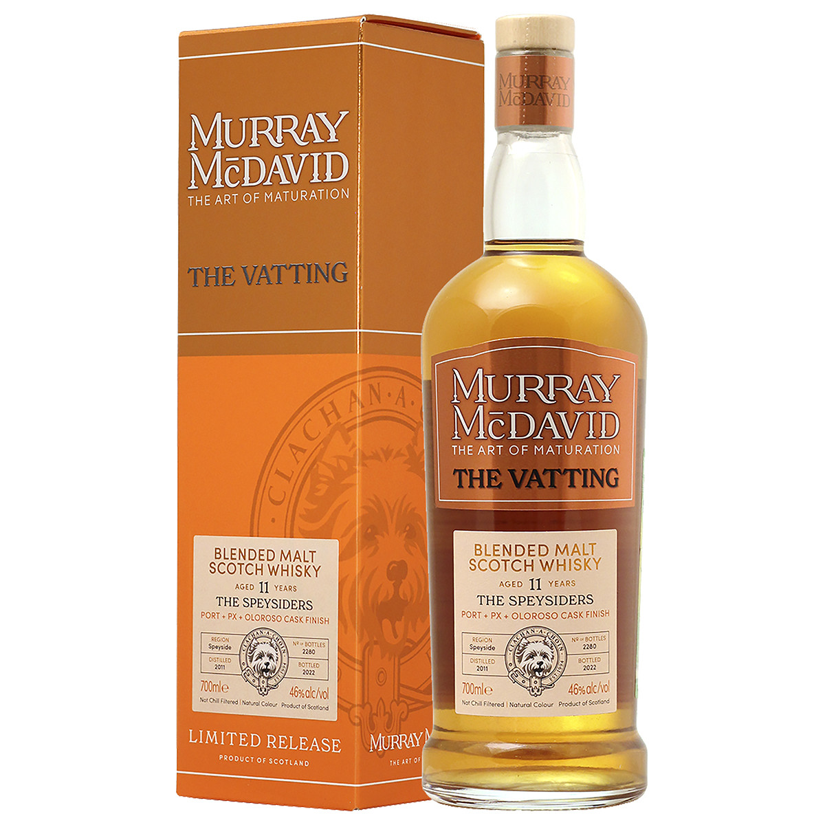 MURRAY MCDAVID THE VATTING SPEYSIDERS AGED 11 YEARS. Этот виски является квинтэссенцией лучших спиртов региона Спейсайд с таких дистиллерий, как Auchroisk, Glentauchers и Strathmill. Виски из долины реки Спей отличается весьма мягким и сладковатым вкусом с тонами фруктов, меда и орехов. Этот релиз не стал исключением, к тому же, отличается потрясающим финишем. Виски довыдерживался в бочках из-под портвейна, а также бочках из-под хересов Олоросо и Педро Хименес.