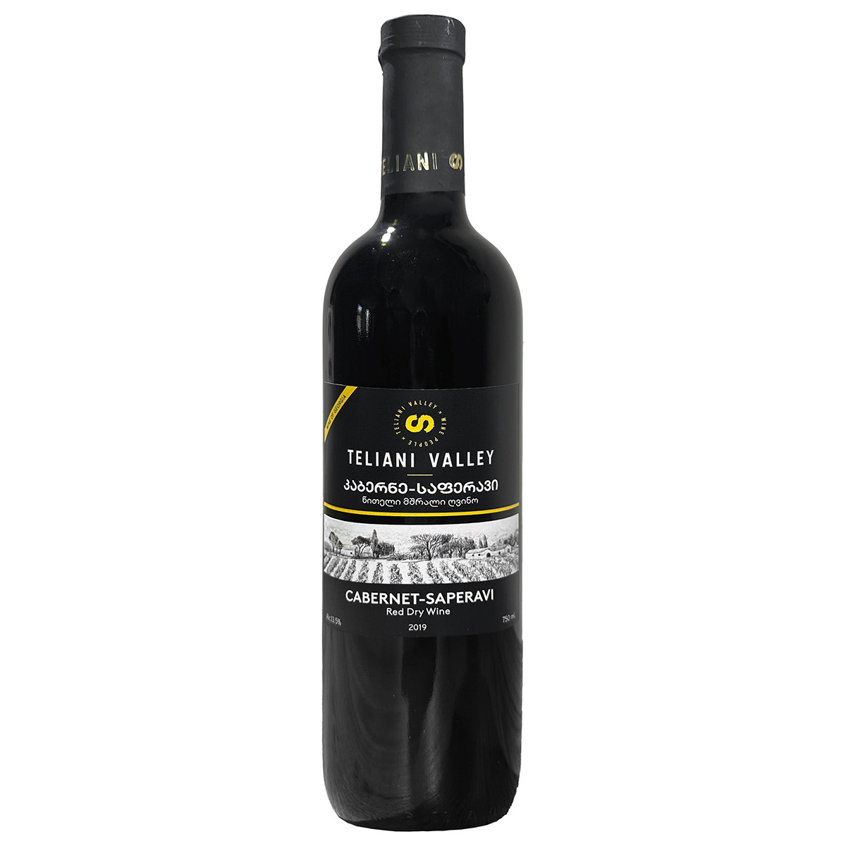 Красное сухое вино «Каберне-Саперави» изготовлено из винограда сортов Каберне-Совиньон и Саперави, выращенных в Кахетии в микрозоне Телиани.