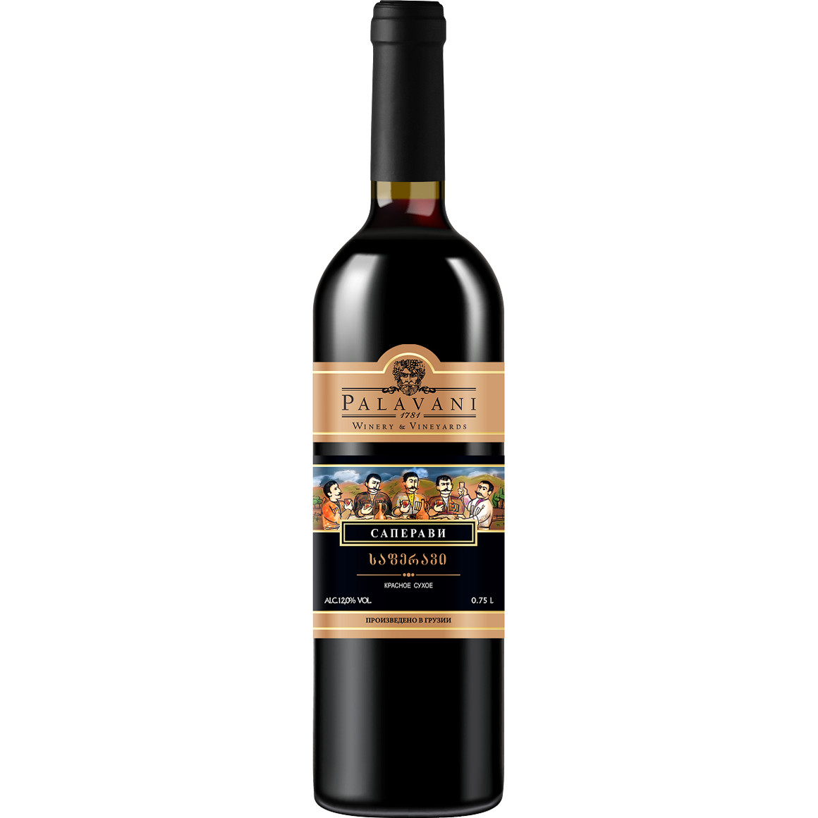 Красное сухое вино произведено из винограда сорта Саперави. Вино насыщенного красного цвета, с ароматом кожи, вишневой косточки, ежевики и оттенками черной смородины. Во вкусе доминируют ноты ежевики, кизила, сливы. Вино подается к блюдам грузинской кухни, свинине и говядине, колбаскам на гриле, выдержанным сырам, сытным закускам и запеченной утке.