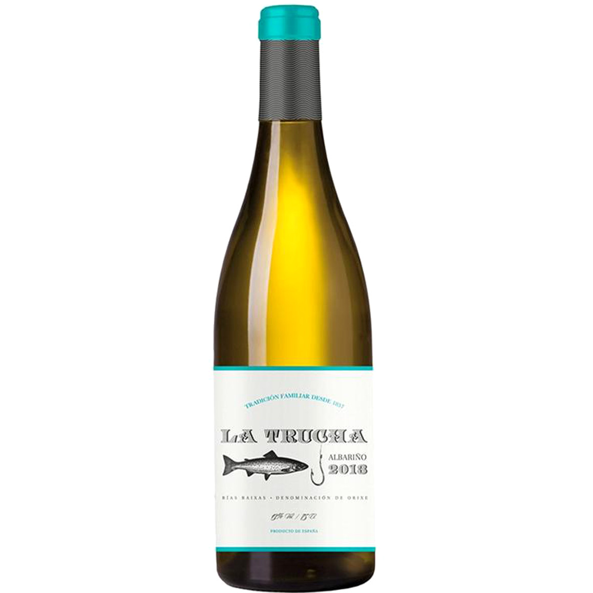 Белое сухое вино Rias Baixas DO Albariño La Trucha с защищенным наименованием места происхождения DO произведено из винограда сорта Альбариньо 100%, собранного исключительно с собственных виноградников. Средний возраст лоз составялет 25 лет.Средний возраст лоз составялет 25 лет. Название вина "La Trucha" (в переводе с испанского — форель) посвящено рыбке, которую основатель хозяйства ловил в детстве вместе со своим дедушкой в горной речке по соседству, Сбор урожая проводится по достижении ягод оптимальной спелости, ферментация сусла проходит в стальных резервуарах при контролируемой низкой температуре.