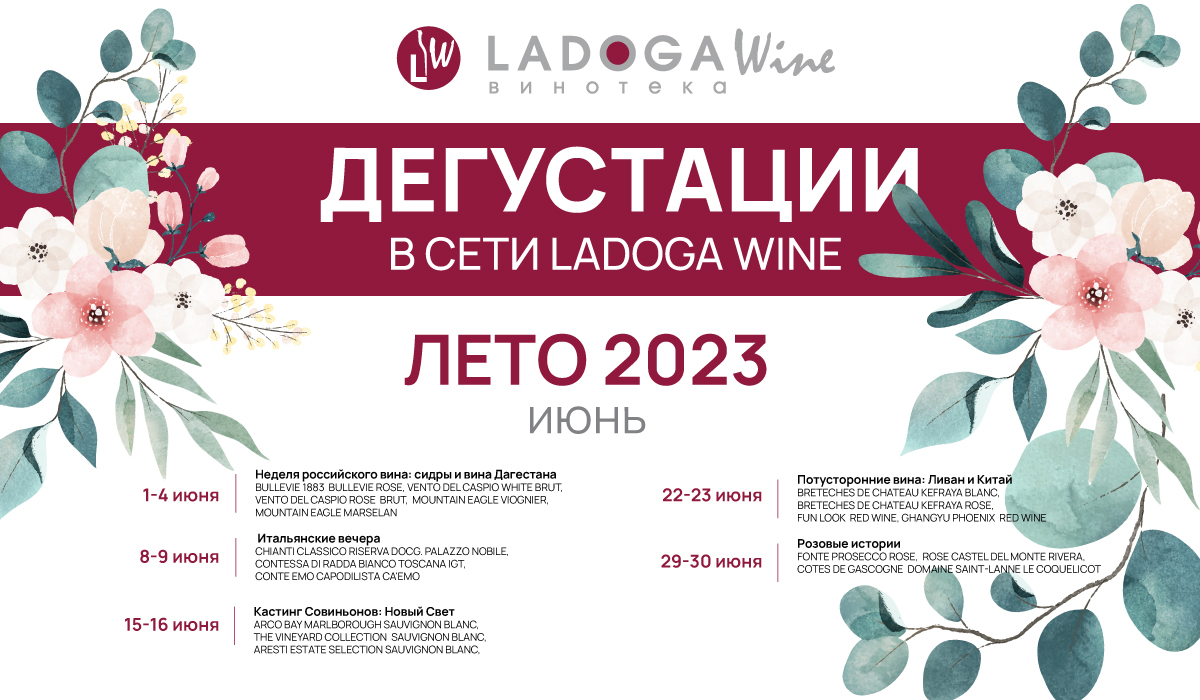 1-4 июня в винотеках LADOGA Wine и Монополь пройдут дегустации на тему "Неделя российского вина - сидры и вина Дагестана", где каждый сможет совершенно бесплатно попробовать представленные напитки. На этой неделе будем дегустировать уникальные сидры с насыщенным ароматом BULLEVIE, два игристых вина Vento del Caspio - вина с итальянским акцентом, которые создавалась на земле Дагестана под контролем и с участием итальянских виноделов, и два вина Mountain Eagle — премиальная линейка вин из Дагестана от семьи Давыдова. Вина "Маунтен Игл" получили высокие оценки экспертов на выставке "Винорус" в 2022 году, став главным открытием форума. Все представленные на дегустации напитки отличаются исключительным соотношением качества и цены.