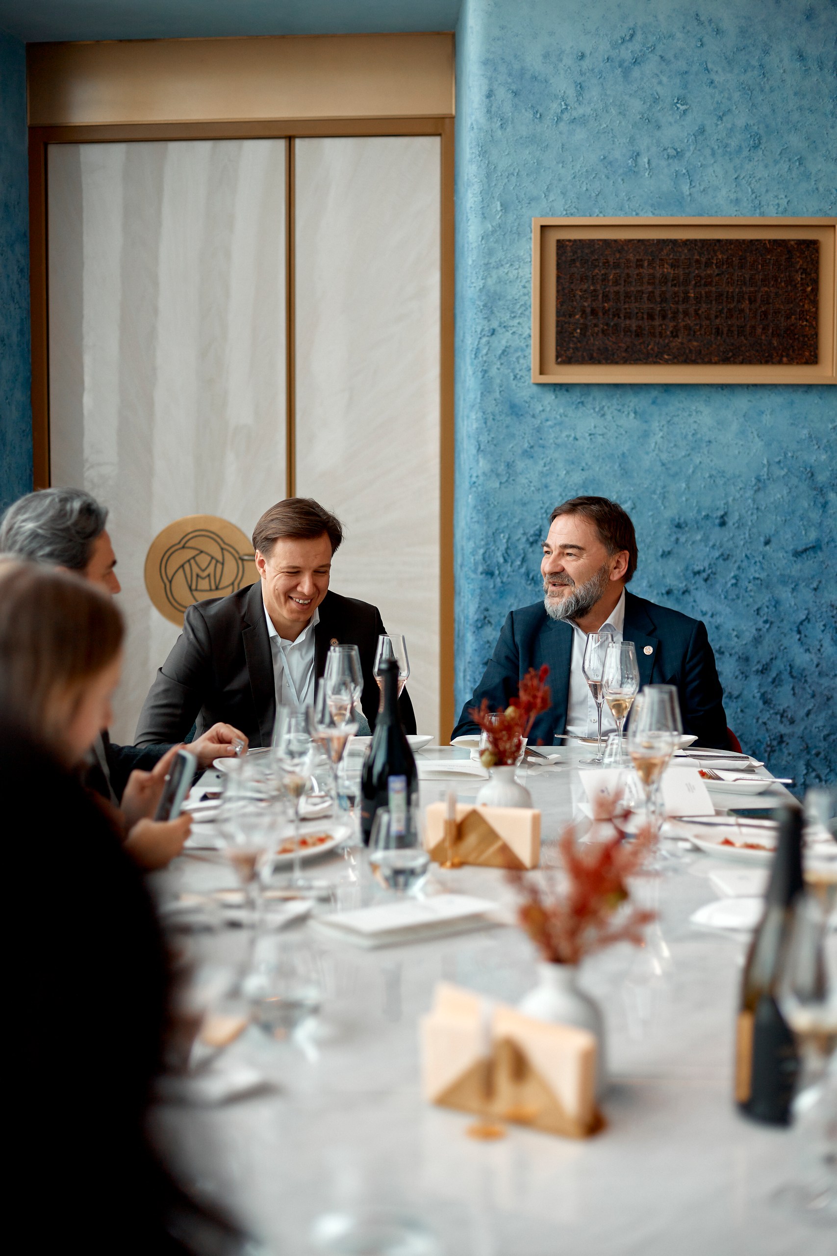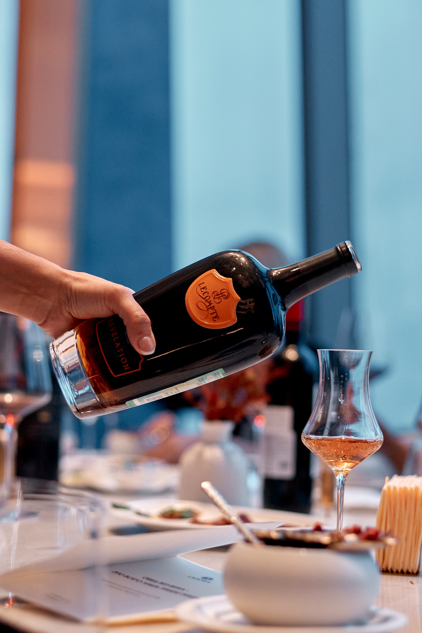 Традиционный ежегодный обед с Дмитрием Журкиным состоялся на 90-м этаже башни «Федерация» в Москва-Сити, в самом высоком ресторане Европы Mume с панорамными окнами и футуристичным интерьером. Гостям предложили 11 вин в сопровождении авторских блюд от гонкогского шефа Джеки Ву, а в качестве вишенки на торте – дижестив: 30-летний портвейн Porto Cruz и кальвадос Lecompte Revelation Pays d’Auge.