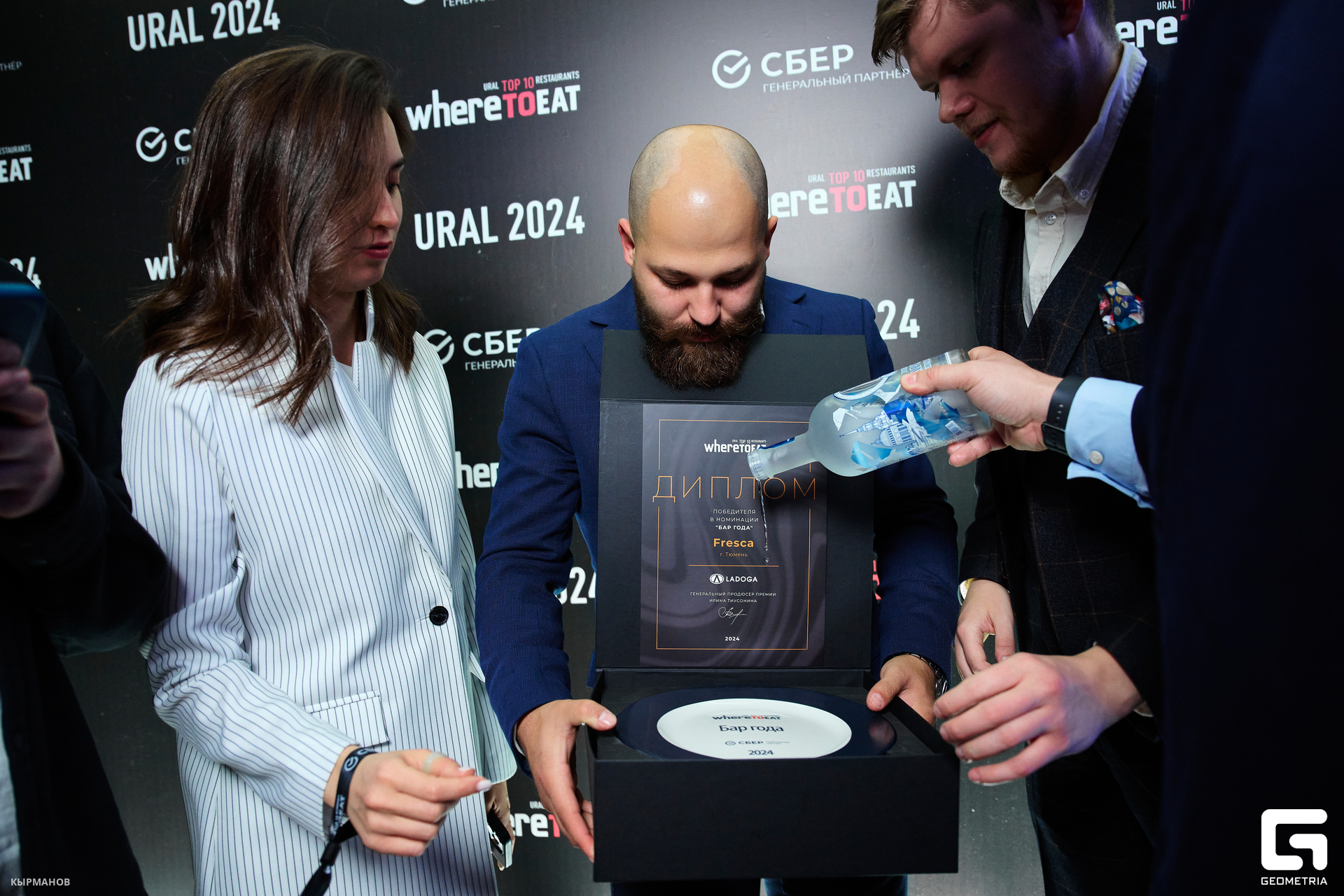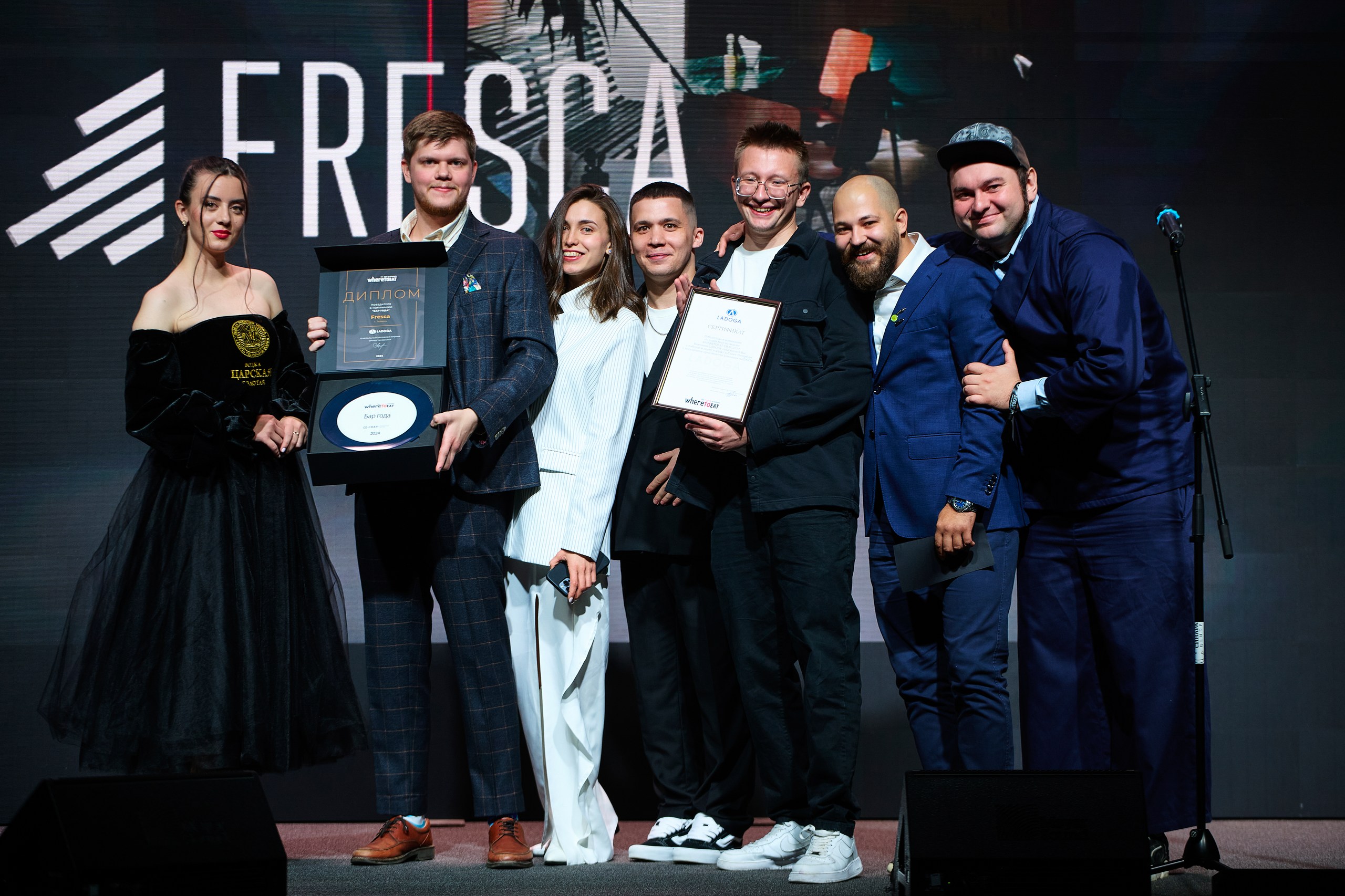 LADOGA со сцены поздравила и наградила победителей номинаций «Лучший бар» и «Лучший сомелье». Тюменский бар Fresca второй год подряд стал обладателем титула «Бар года». Заслуженную награду команда бара получила из рук Владимира Коврижных, бренд-амбассадора LADOGA и бренда "Царская".